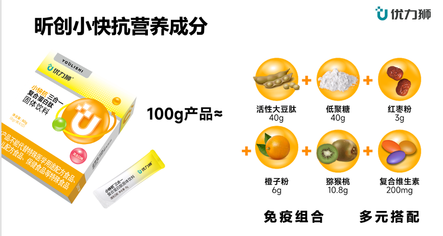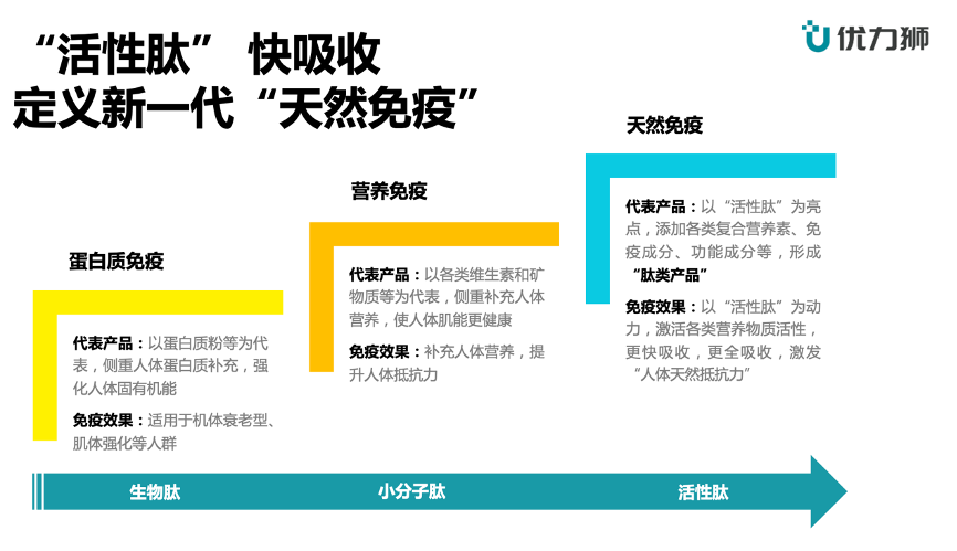 “優(yōu)力獅”品牌,其本身擁有強(qiáng)大的“免疫力”配方,更有卓越的“肽產(chǎn)品”作為強(qiáng)大的“牽引資源”。而這,正是優(yōu)力獅定位“天然免疫力”的基礎(chǔ),是優(yōu)力獅迅猛增長的基礎(chǔ)。
