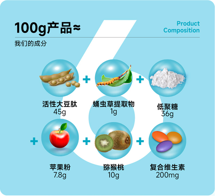 ——名貴成份當(dāng)?shù)?,激發(fā)人體活力。“活性大豆肽”依然是主打的產(chǎn)品特色,全力彰顯其“強(qiáng)吸收”的特性,同時添加“蛹蟲草提取物”、低聚糖等激活人體活力,提供一站式、復(fù)合式服務(wù),全力提升“成人新活力”。