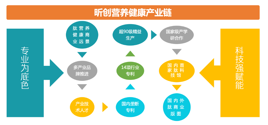 昕創(chuàng)食品擁有自己的“免疫力”品牌夢想,其以“快抗”切入“抵抗力市場”,同時設(shè)置多個品牌,以“肽營養(yǎng)健康”為商業(yè)遠(yuǎn)景,肽產(chǎn)品研發(fā)、肽營養(yǎng)補(bǔ)充并進(jìn),點(diǎn)亮國內(nèi)壟斷專利、14項行業(yè)專利,并建立超90級精益生產(chǎn)線、推行國家級產(chǎn)學(xué)研合作,由此,建立健全昕創(chuàng)營養(yǎng)健康產(chǎn)業(yè)鏈。