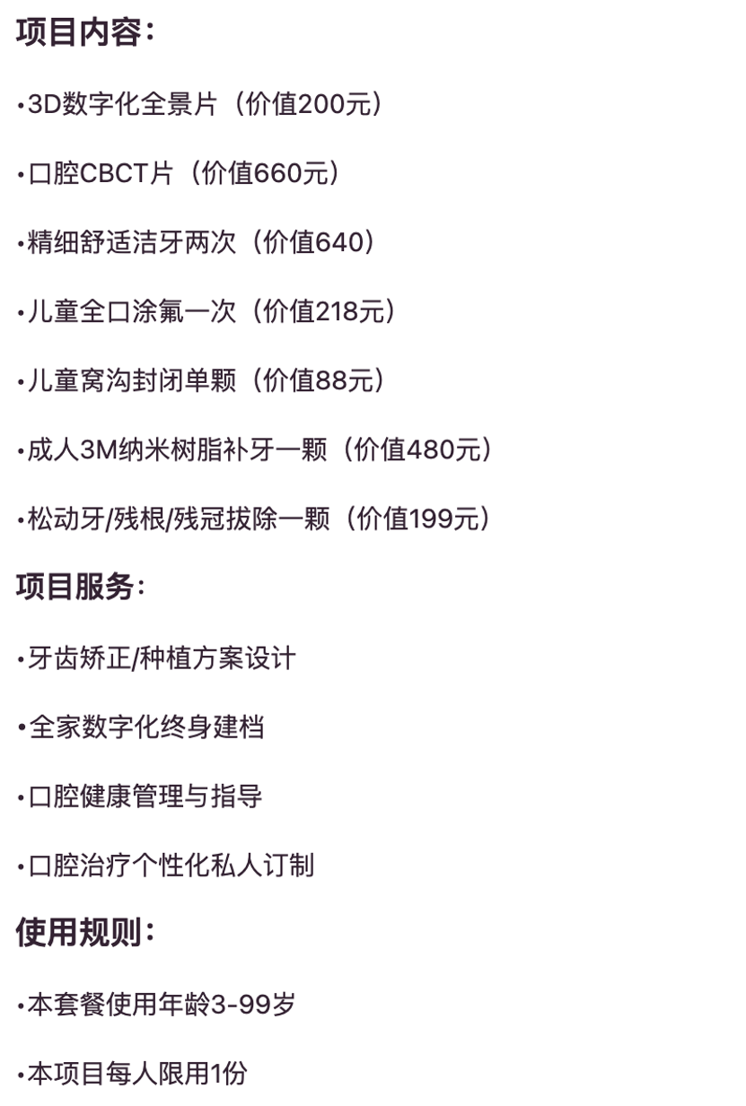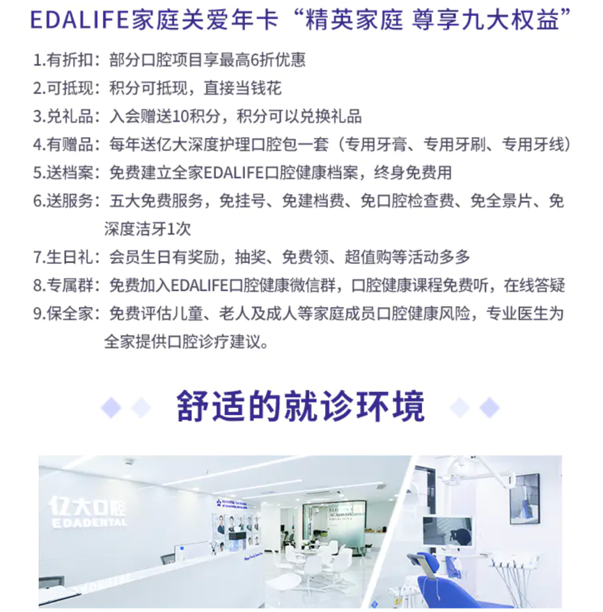 億大EDA-Life全生命周期服務(wù)套餐,涵蓋數(shù)字化口腔檢查、潔牙、涂氟、補(bǔ)牙等多種服務(wù),更涵蓋了兒童、成人等多類口腔服務(wù),這,大大延展了口腔服務(wù)周期,極大提升了用戶消費(fèi)黏性,同時(shí)與家庭卡消費(fèi)等緊密結(jié)合,大大提升了口腔服務(wù)的復(fù)購(gòu),延長(zhǎng)了億大會(huì)員的口腔服務(wù)周期。
