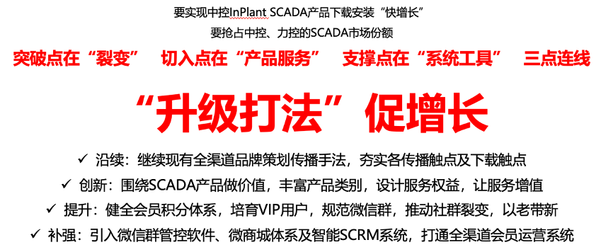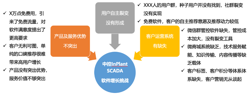 中控InPlant SCADA軟件下載問題及客戶體系建設的背后,是其對于成為“SCADA產品快增長”的渴望,是其對SCADA軟件下載、安裝、激活、推薦等問題專業(yè)化解決的渴望。其實質是引入客戶規(guī)范化運營體系,搭建“以老帶新”“微信群裂變”“全域客戶增長”機制的訴求。
