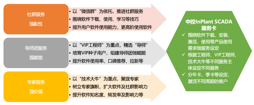 設計優(yōu)秀的產品,植入服務套餐,奠定客戶增長的“產品載體”。高吸引力的產品,有高溢價的服務套餐,有產品服務的“雙加持”,才能助推中控InPlant SCADA軟件的客戶“快增長”。