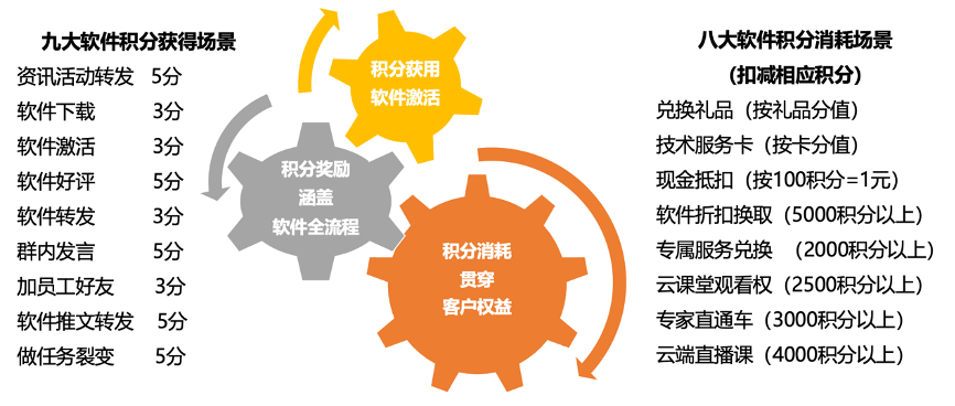 韜慧咨詢認為,“全渠道客戶運營”是軟件產品運營的重中之重,優(yōu)秀的軟件產品,應該以“會員積分”為切入點,全面點亮會員權益,全面創(chuàng)造客戶會員價值,以“軟件會員積分”覆蓋軟件下載激活安裝等全過程,同時拓寬軟件禮品消耗、服務兌換等各環(huán)節(jié),助力軟件客戶大增長。