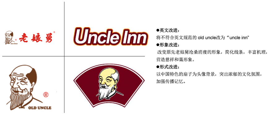 1)英文改進:將不符合英文規(guī)范的 old uncle改為“uncle inn”。