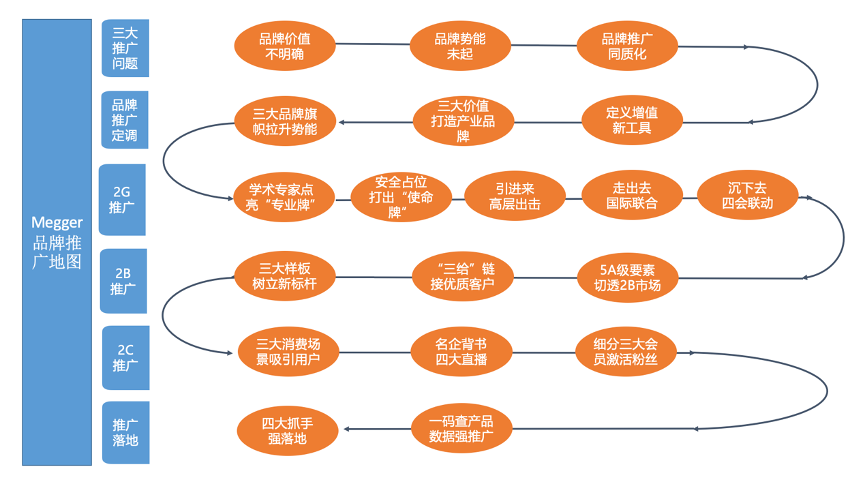 Megger梅凱在面臨“品牌價(jià)值不明確”、“品牌勢能不足”、“品牌推廣同質(zhì)化”等品牌營銷問題的情形下,其全力定調(diào)“品牌推廣”,定義增值新工具,樹立“三大品牌旗幟”拉升勢能,通過2G推廣主打?qū)I(yè)牌使命牌、內(nèi)外聯(lián)動(dòng)樹形象,通過2B推廣搶占“5A級要素”、“三給”鏈接優(yōu)質(zhì)客戶、樹立三大樣板“創(chuàng)價(jià)值”,更通過2C推廣點(diǎn)亮“三大消費(fèi)場景”、做強(qiáng)四大直播、強(qiáng)化會員粉絲運(yùn)營。經(jīng)過此番策劃推廣,Megger梅凱品牌價(jià)值大大亮化,品牌形象大大提升,品牌發(fā)展更上一層樓!