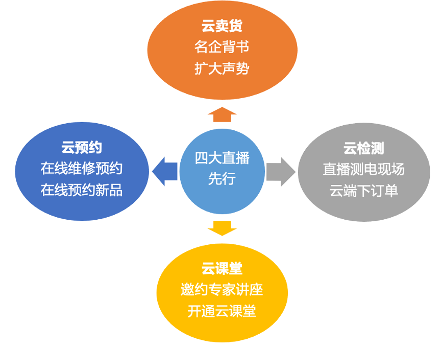展現(xiàn)“現(xiàn)場電力檢測”情形,在線直播、聚攏粉絲“招會員”,直播現(xiàn)場檢測及技術(shù)研討會,云端下單促銷售