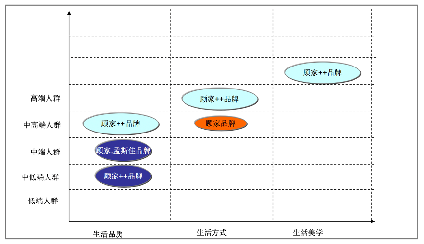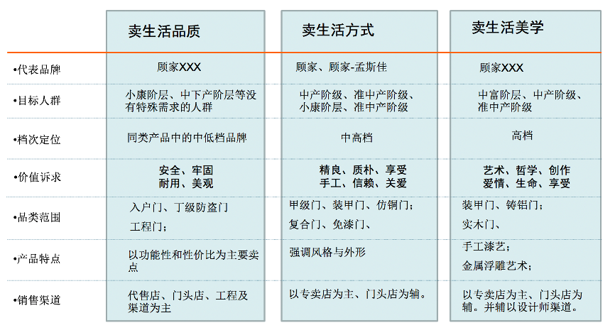 圍繞三大層級將通過不同的定位和訴求實現(xiàn)顧家門業(yè)品牌的區(qū)隔,達到對目標人群的覆蓋。
