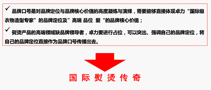 品牌口號是——“國際熨燙傳奇”,國際取勢、高端定位,高端衣物專屬者,高端衣物造型專家。