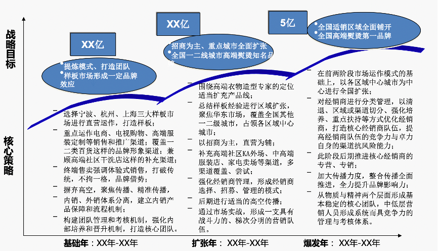 項目組明確建議,卓力五年時間要達到5億級別的銷售規(guī)模;一年內(nèi)在直營樣板市場樹立一定的形象終端、形成一定的品牌效應(yīng);三年內(nèi)成為全國一二線城市高端熨燙知名品牌,五年內(nèi)成為全國高端熨燙引領(lǐng)者。