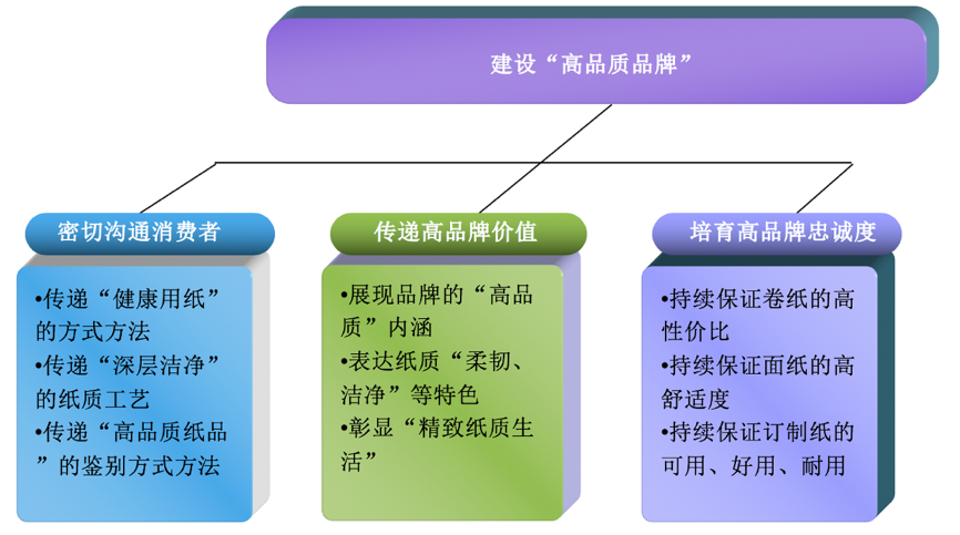 我們認為,在2015年-2017年的三年期內(nèi),云景林紙應該強化品牌的影響力,打造優(yōu)秀的生活用紙品牌,訴求自己的“本土品牌影響力”,建設“高品質品牌”,密切溝通消費者,傳遞“高品質”內(nèi)涵,持續(xù)提升高品牌忠誠度。
