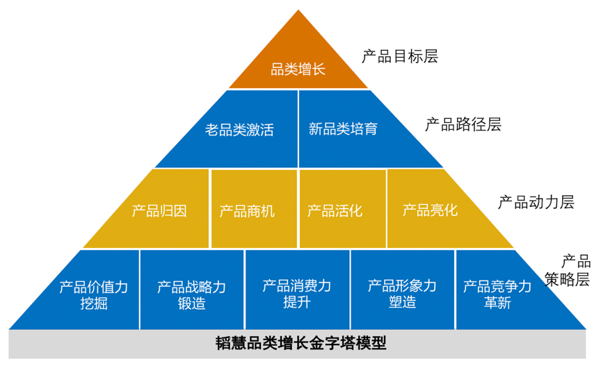 “產(chǎn)品金字塔”,以“推動產(chǎn)品持續(xù)增長”為動力,推動老品類激活和新品類培育,既解決產(chǎn)品的現(xiàn)實問題,又推動產(chǎn)品的“基業(yè)長青”。