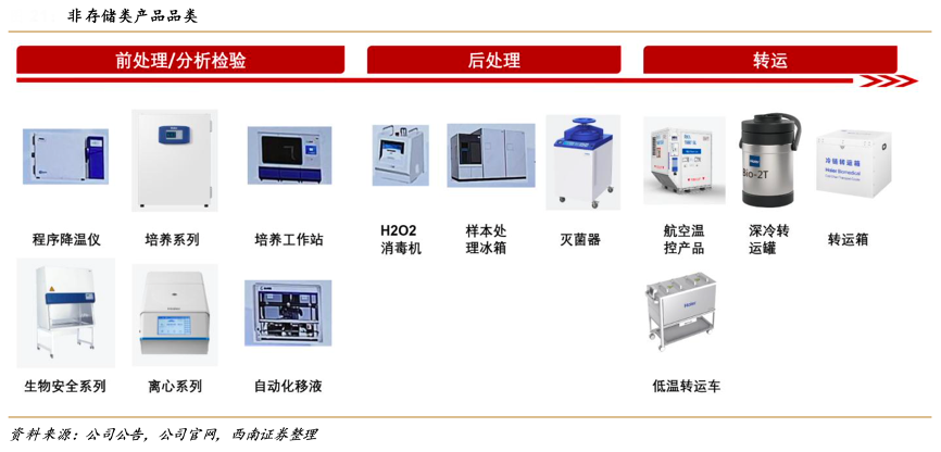 經(jīng)典案例:根據(jù)公司公告、公司官網(wǎng)、西南證券等綜合資訊表明,海爾生物公司以低溫存儲業(yè)務(wù)為立身之本,并堅持自主創(chuàng)新。隨后,公司在產(chǎn)品豐富度上不斷發(fā)力,圍繞生命科學領(lǐng)域?qū)嶒炇页S迷O(shè)備持續(xù)開拓新品類,從最初的生物安全柜、潔凈工作臺、二氧化碳培養(yǎng)箱,到最近開始布局的離心機、程序降溫儀、凍干機等多種產(chǎn)品,實現(xiàn)了多品類產(chǎn)品的全面覆蓋。