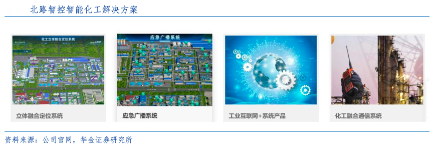 經典案例:根據公司官網、華金證券研究所等綜合資訊表明,北路智控助力“工業(yè)互聯網+?;踩a”體系構建,推動化工生產的智能化和安全化。 公司憑借自身在煤礦行業(yè)的經驗積累和產品優(yōu)勢,致力于推進化工廠雙重預防機制數字化建設及提升安全管理科學化水平,實現智能巡檢、人員精確定位、危險源管理、人員防護機制等的系統的跨 行業(yè)復制應用。