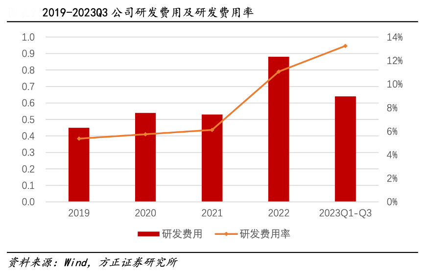 經(jīng)典案例:根據(jù)wind、方正證券研究所等綜合資訊表明, 2023 前三季度,安聯(lián)銳視公司的研發(fā)費(fèi)用為 0.64 億元,研發(fā)費(fèi)用率達(dá)到了 13.25%,同比提升了 3.22 個(gè)百分點(diǎn)。在安防逐漸轉(zhuǎn)向智能化、網(wǎng)聯(lián)化、高清化的背景下,2023 年前三季度,安聯(lián)銳視公司針對(duì)專業(yè)安防產(chǎn)品線公司研發(fā)了 4 路 4K 智能全景攝像機(jī)。