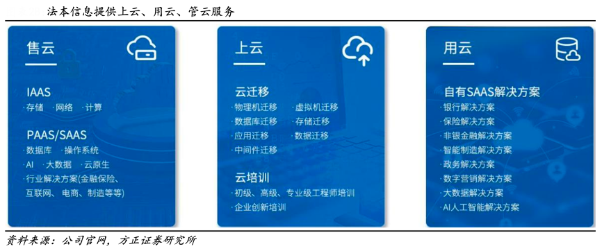 經(jīng)典案例:根據(jù)公司官網(wǎng)、方正證券研究所等綜合資訊表明,法本信息提供云咨詢、云規(guī)劃、云原廠產(chǎn)品、云遷移、云管理、云運(yùn)維、云解決方案等全棧式一攬子云服務(wù),滿足客戶上云、用云、管云需求。同步向云業(yè)務(wù)高價(jià)值領(lǐng)域快速發(fā)展與延伸,不斷提升 MSP 的競(jìng)爭(zhēng)優(yōu)勢(shì)和服務(wù)能力。