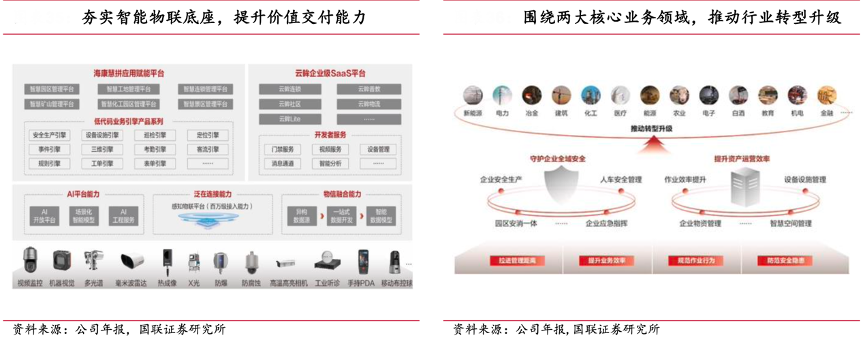 經(jīng)典案例:根據(jù)公司年報、國聯(lián)證券研究所等綜合資訊表明,??低曌鳛橹悄芪锫?lián)網(wǎng)領(lǐng)域的領(lǐng)導者,以智能物聯(lián)技術(shù)體系為核心,深耕各行各業(yè)的應用場景,打造智能物聯(lián)產(chǎn)品和解決方案體系,助力客戶實現(xiàn)行業(yè)轉(zhuǎn)型升級。同時,公司圍繞“拉進管理距離、提升業(yè)務效率、規(guī)范作業(yè)行為、防范安全隱患”四大價值主張,聚焦“守護企業(yè)全域安全”和“提升資產(chǎn)運營效率”兩大核心業(yè)務領(lǐng)域,深入企業(yè)園區(qū)、產(chǎn)業(yè)園區(qū)、化工園區(qū)、商業(yè)園區(qū)、校園、醫(yī)院、場 館等多個場景。