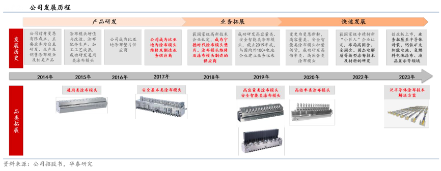 經(jīng)典案例:根據(jù)公司招股書(shū)、華泰研究等綜合資訊表明,曼恩斯特公司深耕高精密狹縫式涂布模頭,實(shí)現(xiàn)核心產(chǎn)品的更新迭代,獲得下游電池客戶的認(rèn)證,并拓展了涂布設(shè)備、涂布配件等業(yè)務(wù),從零部件供應(yīng)商轉(zhuǎn)型為涂布整體方案服務(wù)商,并實(shí)現(xiàn)了涂布工藝在泛半導(dǎo)體與燃料電池等領(lǐng)域的技術(shù)突破。