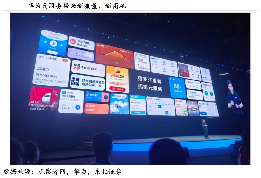 經(jīng)典案例:根據(jù)觀察者網(wǎng)、華為、東北證券等綜合資訊表明,鴻蒙生態(tài)服務(wù)分發(fā),給合作伙伴帶來新流量。在華為開發(fā)者大會(huì),余承東透露,在基于鴻蒙操作系統(tǒng)開發(fā)元服務(wù)后,僅半年時(shí)間,新浪財(cái)經(jīng)用戶活躍度增長(zhǎng)了 6 倍;喜馬拉雅的用戶活躍度增長(zhǎng)了11倍;華為音樂活躍用戶數(shù)也增長(zhǎng)了 3 倍;藥管家在 使用小藝智能推薦后,單月新增用戶達(dá)千萬級(jí)。