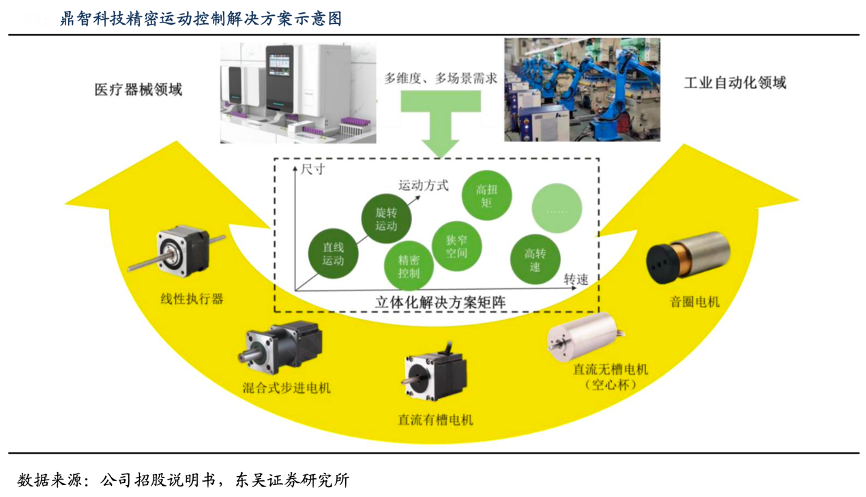 經(jīng)典案例:根據(jù)公司招股說(shuō)明書(shū)、東吳證券研究所等綜合資訊表明,鼎智科技提供定制化精密運(yùn)動(dòng)控制解決方案,面向醫(yī)療器械及工業(yè)自動(dòng)化領(lǐng)域。公司成立于 2008 年,為國(guó)內(nèi)領(lǐng)先的精密運(yùn)動(dòng)控制解決方案提供商,于 2023 年成功在北交所上市。公司通過(guò)線性執(zhí)行器、混合式步進(jìn)電機(jī)、直流電機(jī)及音圈電機(jī)等產(chǎn)品形成控制模組的底層架構(gòu),實(shí)現(xiàn)直線和旋轉(zhuǎn)運(yùn)動(dòng),并豐富產(chǎn)品尺寸、提高轉(zhuǎn)速范圍,提供立體化精密運(yùn)動(dòng)控制解決方案矩陣。
