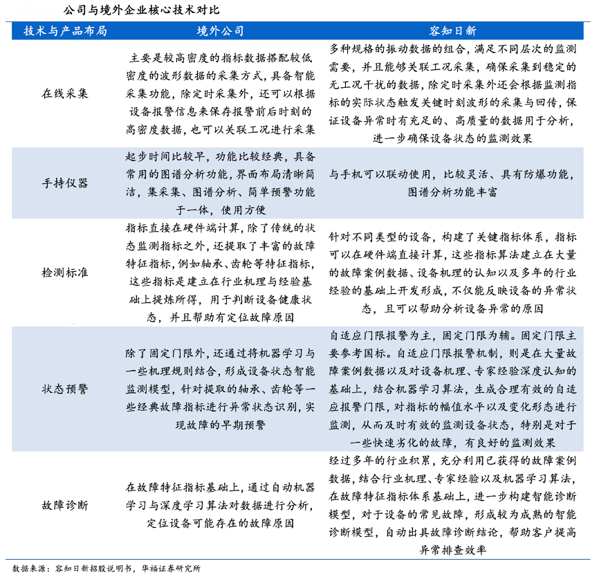 經(jīng)典案例:根據(jù)容知日新招股說明書、華福證券研究所等綜合資訊表明,容知日新深耕行業(yè)十多年,構建專業(yè)的技術團隊,與客戶、行業(yè)專家構建了深度的合作關系,不斷提升技術水平和行業(yè)認識,不斷提高數(shù)據(jù)質量。同時通過邊緣計算技術,在硬件端植入智能算法,實現(xiàn)更加精準的數(shù)據(jù)采集,以及實現(xiàn)更加及時、有效的本地化設備狀態(tài)監(jiān)測。