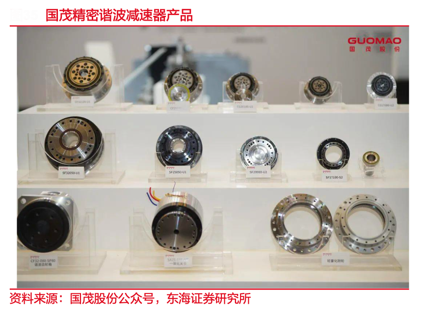 經典案例:根據國茂股份公眾號、東海證券研究所等綜合資訊表明,2023年國茂精密完成生產基地搬遷工作,諧波減速器產品研發(fā)推廣有序推進,目前產品速比可按需定制。諧波減速器在人形機器人領域應用廣闊,以 Optimus 為 例,所有旋轉執(zhí)行器均需配備諧波減速器。