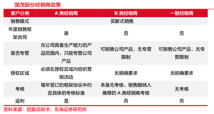 經(jīng)典案例:根據(jù)招股說明書、東海證券研究所等綜合資訊表明,客戶開發(fā)方面,國茂股份公司堅(jiān)持以“精準(zhǔn)銷售” 為指引,建立全方位覆蓋的營銷網(wǎng)絡(luò)。核心經(jīng)銷商忠誠度高,覆蓋面廣,銷售規(guī)模與效率較強(qiáng)。大客戶拓展方面,公司及子公司捷諾傳動(dòng)與軟控股份、贏合科技、金韋爾等細(xì)分行業(yè)優(yōu)質(zhì)客戶達(dá)成合作。
