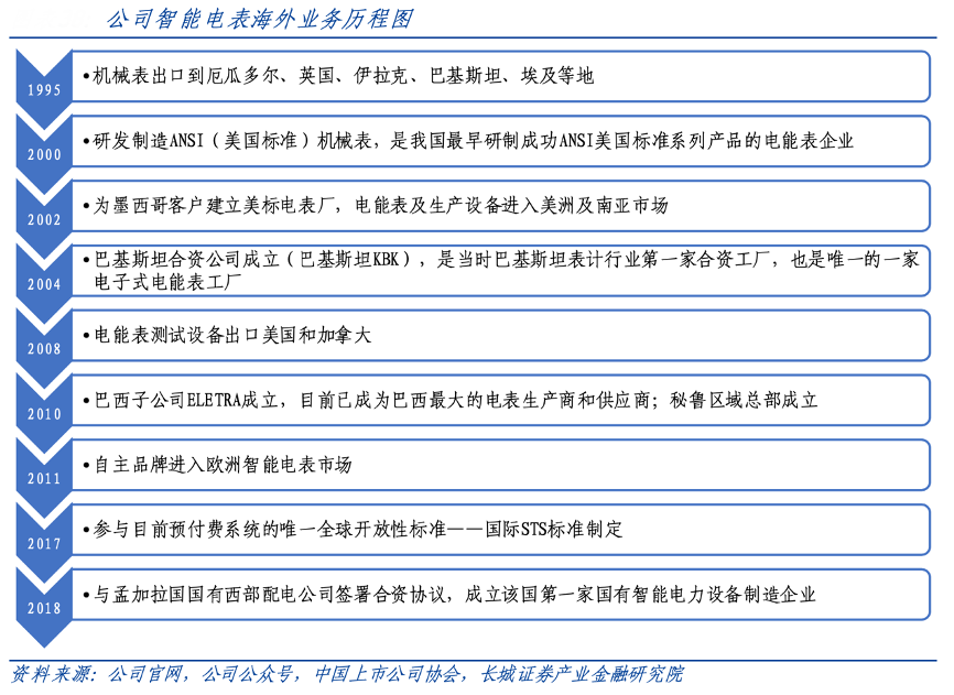 經(jīng)典案例:根據(jù)公司官網(wǎng)、公司公眾號(hào)、中國(guó)上市公司協(xié)會(huì)、長(zhǎng)城證券產(chǎn)業(yè)金融研究院等綜合資訊表明,在渠道方面,海興電力公司電能表陸續(xù)打入美洲、亞洲、歐洲、非洲市場(chǎng),并積極在當(dāng)?shù)亟◤S、成立子公司等實(shí)現(xiàn)本土化生產(chǎn)和銷售。公司對(duì)海外市場(chǎng)的戰(zhàn)略重視和持續(xù)投入讓公司海外市場(chǎng)每一步的拓展都處于領(lǐng)先位置,具備極強(qiáng)先發(fā)優(yōu)勢(shì)。