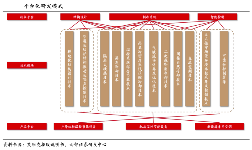 經(jīng)典案例:根據(jù)英維克招股說明書、西部證券研發(fā)中心等綜合資訊表明,英維克在公司整體平臺競爭優(yōu)勢下,其已經(jīng)具備提供端到端全鏈條產(chǎn)品和方案的能力。隨著大 型和超大型數(shù)據(jù)中心對能效要求更高、對建設(shè)速度要求越來越快,這些特點要求溫控供應(yīng)商具備技術(shù)創(chuàng)新能力和快速響應(yīng)能力、同時對產(chǎn)品的散熱效率和性價比也有更高的要求。