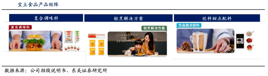 經(jīng)典案例:根據(jù)公司招股說明書、東吳證券研究所等綜合資訊表明,寶立食品公司產(chǎn)品以粉體、醬汁類復(fù)調(diào)為主,擴(kuò)展輕烹業(yè)務(wù)與飲品甜點(diǎn)配料,產(chǎn)品線不斷豐 富。公司深耕復(fù)合調(diào)味料領(lǐng)域多年,將西方主流快餐經(jīng)典口味引入中國市場,并持續(xù)不 斷地研發(fā)新式西餐口味、迎合中國大眾消費(fèi)市場向市場推出新產(chǎn)品。