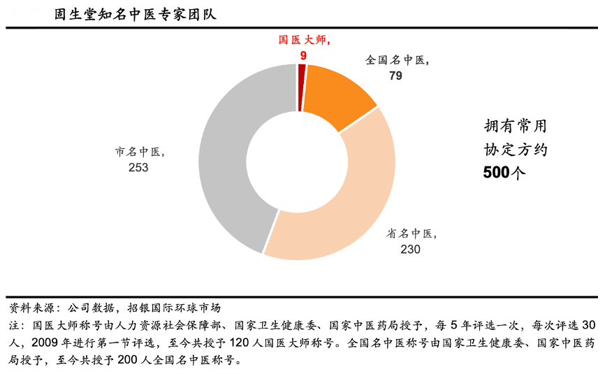 經(jīng)典案例:根據(jù)公司數(shù)據(jù)、招銀國際環(huán)球市場等綜合資訊表明,醫(yī)療機(jī)構(gòu)的中藥制劑大多來自本院名老中醫(yī)的協(xié)定方,是名老中醫(yī)學(xué)術(shù)思想和多年診療經(jīng)驗(yàn)的智慧結(jié)晶。截至2023 年 6 月底,固生堂合作的名中醫(yī)達(dá)到 571 位,其中包括 9 位國醫(yī)大師和 79 位全國名中醫(yī)。