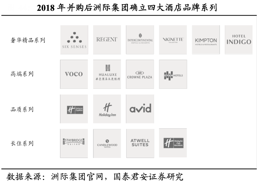 經(jīng)典案例:根據(jù)洲際集團(tuán)官網(wǎng)、國(guó)泰君安證券研究等綜合資訊表明,洲際酒店集團(tuán)旗下現(xiàn)有四大系列,從高端奢華型到中端精 選型一應(yīng)俱全,覆蓋不同細(xì)分市場(chǎng) ,以品質(zhì)系列為擴(kuò)張主力。其奢華精品系列包括六善酒 店(Six Senses)、麗晶酒店(Regent)、洲際酒店、Vignette Collection、 金普頓酒店( Kimpton)、 英迪格(Ind igo)六大品牌。