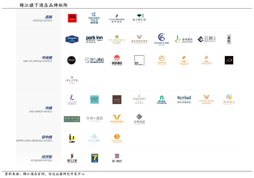 經(jīng)典案例:根據(jù)環(huán)球旅訊、錦江酒店官網(wǎng)、錦江酒店公司公告、信達(dá)證券研究開發(fā)中心等綜合資訊表明,錦江通過多次收購,吸納了眾多酒店品牌,從經(jīng)濟(jì)型到高端各細(xì)分檔次均有多個知名品牌,在不同的城市層級中形成了有梯度的價格體系。