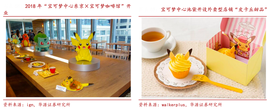 經(jīng)典案例:根據(jù)ign、walkerplus、華源證券研究所等綜合資訊表明,2018 年,第一家寶可夢中心東京日本 橋推出“寶可夢中心東京×寶可夢咖啡館”。與店鋪相鄰的寶可夢咖啡館是首個常設餐飲店,提供以寶可夢為主題的精致菜單。2019 年,大阪開設了西日本首個“寶可 夢中心大阪×寶可夢咖啡館”,寶可夢中心池袋則開設了首個外賣型店鋪“皮卡丘甜品”。