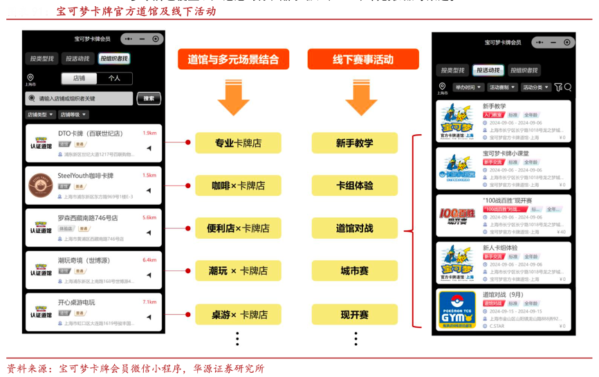 經(jīng)典案例:根據(jù)寶可夢(mèng)卡牌會(huì)員微信小程序、華源證券研究所等綜合資訊表明,寶可夢(mèng)卡牌官方道館超 800 家,為玩家提供交流、對(duì)戰(zhàn)場(chǎng)所。據(jù)玩世代,2022 年 10 月 官方公布的第一批“寶可夢(mèng)卡牌道館”僅 30 家,覆蓋 21 座城市;2023 年 6 月則增加至超 800 家。