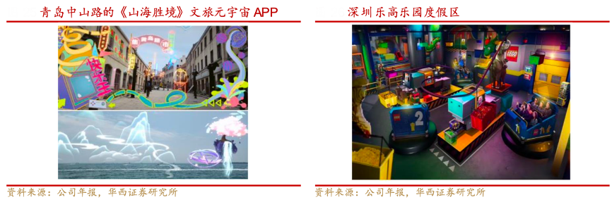 經(jīng)典案例:根據(jù)公司年報(bào)、華西證券研究所等綜合資訊表明,英國 Holovis 2023 年 7 月,青島中山路的《山海勝境》文旅元宇宙 APP 順利上線,運(yùn)用 AR 技術(shù)為青島傳統(tǒng)文旅地標(biāo)和文化建筑注入了數(shù)字化新生命。同月,Holovis 與戰(zhàn)略合作伙伴共同打造了深圳樂高樂園度假區(qū)《樂高工廠探險(xiǎn)之旅》 項(xiàng)目,采用 HoloTrac 計(jì)算機(jī)視覺和追蹤算法,營(yíng)造了虛擬世界的個(gè)性化體驗(yàn)。