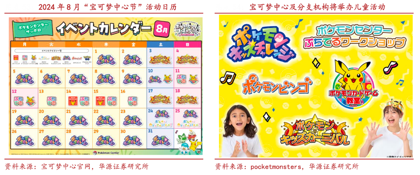 經(jīng)典案例:根據(jù)寶可夢中心官網(wǎng)、pocketmonsters、華源證券研究所等綜合資訊表明,“寶可夢中心”是官方直營店, 提供各種游戲軟件和紙牌游戲的原創(chuàng)商品; 此外,還設(shè)置了休閑商店“寶可夢商店”,里面有毛絨玩具和糖果,以及在線商店“寶可夢中心 Online”。寶可夢 2024 年寶可夢中心節(jié)日以“盛夏的寶可夢狂歡”為主題,寶可夢中心推出節(jié)日限定商品、特別互動體驗和現(xiàn)場表演,例如寶可夢舞蹈、寶可夢手工制作、寶可夢角色扮 演等各種兒童活動。