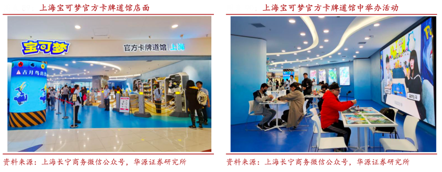 經(jīng)典案例:根據(jù)上海長寧商務(wù)微信公眾號、華源證券研究所等綜合資訊表明,2023 年 12 月 6 日,寶可夢全國首家線下門店“寶可夢官方卡牌道館-上海”在龍之夢 城市生活中心開業(yè),占地約 600 平方米。店內(nèi)主要分為零售區(qū)和游戲互動區(qū),以道館式設(shè)計巧妙劃分。零售區(qū)域包括卡牌、卡墊、服飾、玩偶等商品,玩家則在游戲互動區(qū)進行線下對戰(zhàn)。