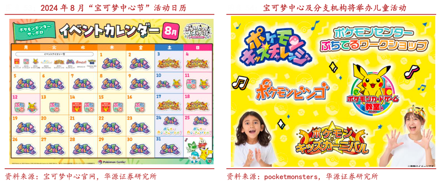 經(jīng)典案例:根據(jù)寶可夢中心官網(wǎng)、pocketmonsters、華源證券研究所等綜合資訊表明,寶可夢公司具有完整的渠道布局,不同店鋪差異化定位。“寶可夢中心”是官方直營店, 提供各種游戲軟件和紙牌游戲的原創(chuàng)商品。寶可夢公司面向兒童群體推出豐 富活動。寶可夢 2024 年寶可夢中心節(jié)日以“盛夏的寶可夢狂歡”為主題,寶可夢中心推出節(jié)日限定商品、特別互動體驗和現(xiàn)場表演,例如寶可夢舞蹈、寶可夢手工制作、寶可夢角色扮演等各種兒童活動。