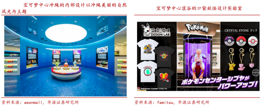 經(jīng)典案例:根據(jù)aeonmall、famitsu、華源證券研究所等綜合資訊表明,寶可夢中心遍布日本,各有其特色設(shè)計以及原創(chuàng)商品,并舉行反映地區(qū)特色的活動。例如,在“寶可夢中心沖繩”,會舉辦將沖繩傳統(tǒng)技藝 “紅型印染” 與寶可夢相結(jié)合的工坊活動,以及皮卡丘表演沖繩傳統(tǒng)文藝“琉球舞”的演出。在藝術(shù)和文化中心澀谷開設(shè)的“寶可夢中心澀谷” 推出了“寶可夢設(shè)計實驗室”,用戶可以自由組合喜愛的寶可夢藝術(shù)、印章和文字,制作原創(chuàng) T 恤。