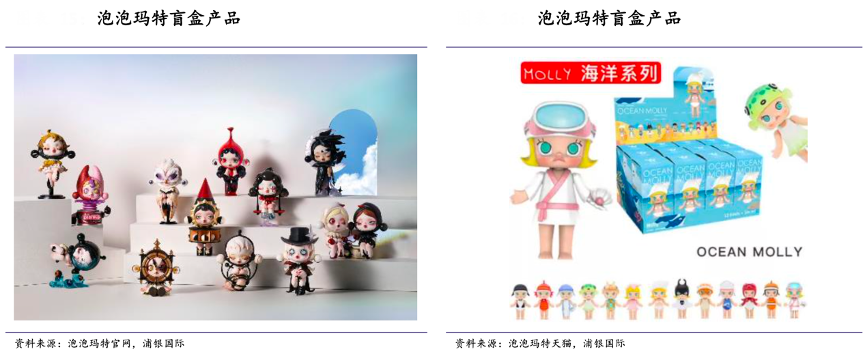 經(jīng)典案例:根據(jù)公司數(shù)據(jù)、浦銀國際等綜合資訊表明,泡泡瑪特的產(chǎn)品主要以盲盒為主。相較其他潮玩產(chǎn)品,盲盒為消費(fèi)者帶來神秘感,激發(fā)消費(fèi)者對(duì)未知的探索與好奇心,同時(shí)在拆盲盒的過程中為消費(fèi)者帶來較強(qiáng)的互動(dòng)性購物體驗(yàn);在抽中稀缺產(chǎn)品后,為消費(fèi)者帶來驚喜感以及滿足感。泡泡瑪特目前在中國潮玩的盲盒領(lǐng)域是絕對(duì)的領(lǐng)導(dǎo)者,具有壟斷地位。