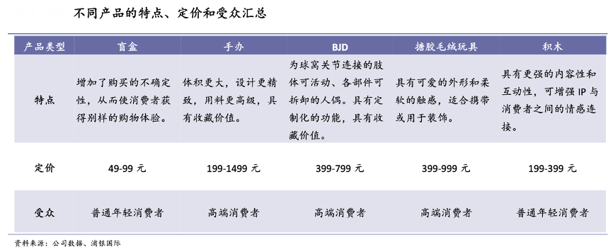 經(jīng)典案例:根據(jù)泡泡瑪特官網(wǎng)、泡泡瑪特天貓、浦銀國際等綜合資訊表明,過去幾年里,泡泡瑪特在盲盒的基礎(chǔ)上不斷拓展自己的潮玩產(chǎn)品品類,形成更豐富的產(chǎn)品組合。此舉不僅能夠更多元化地來展現(xiàn)和提升藝術(shù)家 IP 的內(nèi) 涵,也能夠拓寬消費(fèi)者對(duì)潮玩產(chǎn)品更多的場(chǎng)景需求,比如收藏需求、裝飾需求、陪伴需求、出行需求等。
