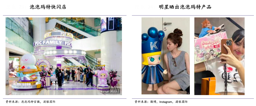 經典案例:根據(jù)泡泡瑪特官微、微博、Instagram、浦銀國際等綜合資訊表明,泡泡瑪特在高線城市的熱門商圈設置店鋪,在年輕人的的消費場所中創(chuàng)造銷售機會。另外,泡泡瑪特也與商場合作,開設快閃店,以限時限量、吸睛的外觀等特性,為消費者提供沉浸式的體驗,提升品牌的知名度。