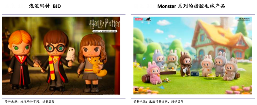經典案例:根據(jù)泡泡瑪特官網(wǎng)、浦銀國際等綜合資訊表明,泡泡瑪特基于旗下主要藝術家 IP(包括 Molly 和 SP)所推出的 BJD 娃 娃產品,市場反響良好。公司去年還涉足了搪膠毛絨公仔的領域,其推出的 Monster 系列的搪膠毛絨產品受到了消費者的廣泛歡迎,并成為爆品。