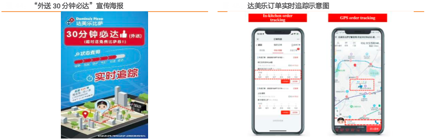 經(jīng)典案例:根據(jù)達(dá)美樂官方微博、公司公告、天風(fēng)證券研究所等綜合資訊表明,結(jié)合弗若斯特沙利文報(bào)告,達(dá)美樂是中國唯一一家在所有銷售渠道提供 30 分鐘必達(dá)承諾的披薩公司,在過往記錄期間,達(dá)美樂約 90%的外送訂單完成送達(dá)承諾,平均訂單完成時(shí)間約為 23 分鐘。