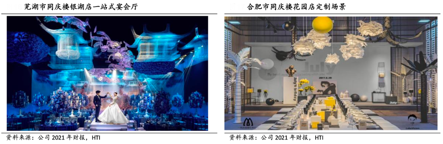 經(jīng)典案例:根據(jù)公司2021年財(cái)報(bào)、中安在線網(wǎng)、HTI等綜合資訊表明,長(zhǎng)期以來(lái),同慶樓公司成立了專門(mén)的婚禮宴會(huì)事業(yè)部,經(jīng)營(yíng)“帕麗斯”、“同慶樓”、“會(huì)賓樓”三大品牌。截至 1H23,公司已有婚禮會(huì)館門(mén)店 8 家,包括蕪湖玫瑰莊園、宴會(huì)中心銀湖店、合肥會(huì)賓樓宴會(huì)中心、合肥帕麗斯婚禮藝術(shù)殿堂、靖江帕麗斯婚禮藝術(shù)中心等。