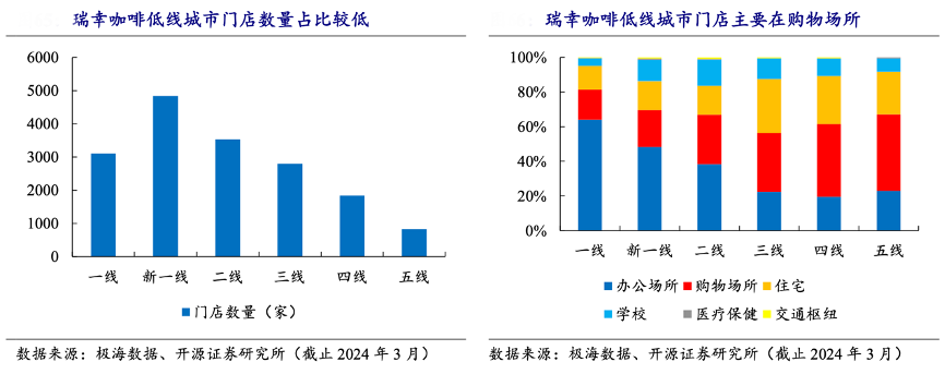 經(jīng)典案例:根據(jù)極海數(shù)據(jù)、開源證券研究所等綜合資訊表明,瑞幸咖啡通過性價(jià)比和快咖啡優(yōu)勢,精準(zhǔn)聚焦咖啡需求較高的白領(lǐng)辦公人群,目前辦公場所門店超 7000 家,占比總門店數(shù)量 44.7%,在辦公場所的競爭優(yōu)勢明顯領(lǐng)先于其他競品。