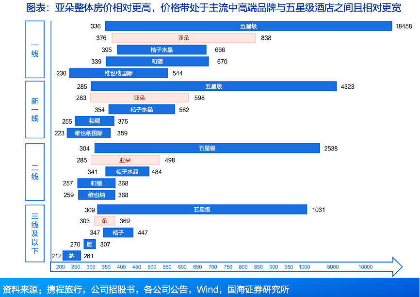 經(jīng)典案例:根據(jù)公司招股書、攜程旅行、各公司公告、wind、國海證券研究所等綜合資訊表明,亞朵高品質(zhì)的產(chǎn)品服務(wù)帶來經(jīng)營穩(wěn)健,疫情期間展現(xiàn)強(qiáng)韌性,疫后復(fù)蘇實現(xiàn)高彈性,為此消費(fèi)者愿意付出溢價,亞朵提價能力更強(qiáng)。疫情三年,亞朵RevPAR恢復(fù)度明顯 優(yōu)于其他集團(tuán)的中高端品牌,亞朵RevPAR平均恢復(fù)度約82%,高于錦江/華住/首旅(中高端)的74%/77%/61%;疫后階段,亞朵高彈性復(fù)蘇,2023H1的恢復(fù)度 約117%,高于錦江/華住/首旅(中高端)的93%/112%/91%。