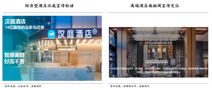 經(jīng)典案例:根據(jù)漢庭官網(wǎng)、施博閣官網(wǎng)、浦銀國際等綜合資訊表明,細(xì)分酒店市場之間巨大的差異也促使品牌更加專注于自身的細(xì)分賽道。例如,漢庭酒店的宣傳用語是“14 億國民的遠(yuǎn)親與近鄰”,強(qiáng)調(diào)性價比以及便 利性,而同樣是華住集團(tuán)旗下的高端酒店施柏閣則是以“品質(zhì)會議、優(yōu)質(zhì)度 假、聚享時光”來打造精致的住宿體驗。