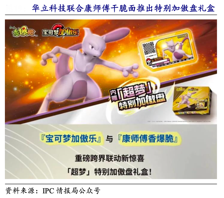 經(jīng)典案例:根據(jù)IPC情報(bào)局公眾號、開源證券研究所等綜合資訊表明,華立科技聯(lián)合康師傅干脆面推出特別加傲盤禮盒,包含香爆脆干脆面與一張?zhí)貏e加傲盤,加傲盤可用于在對應(yīng)游藝機(jī)進(jìn)行游玩或收藏。