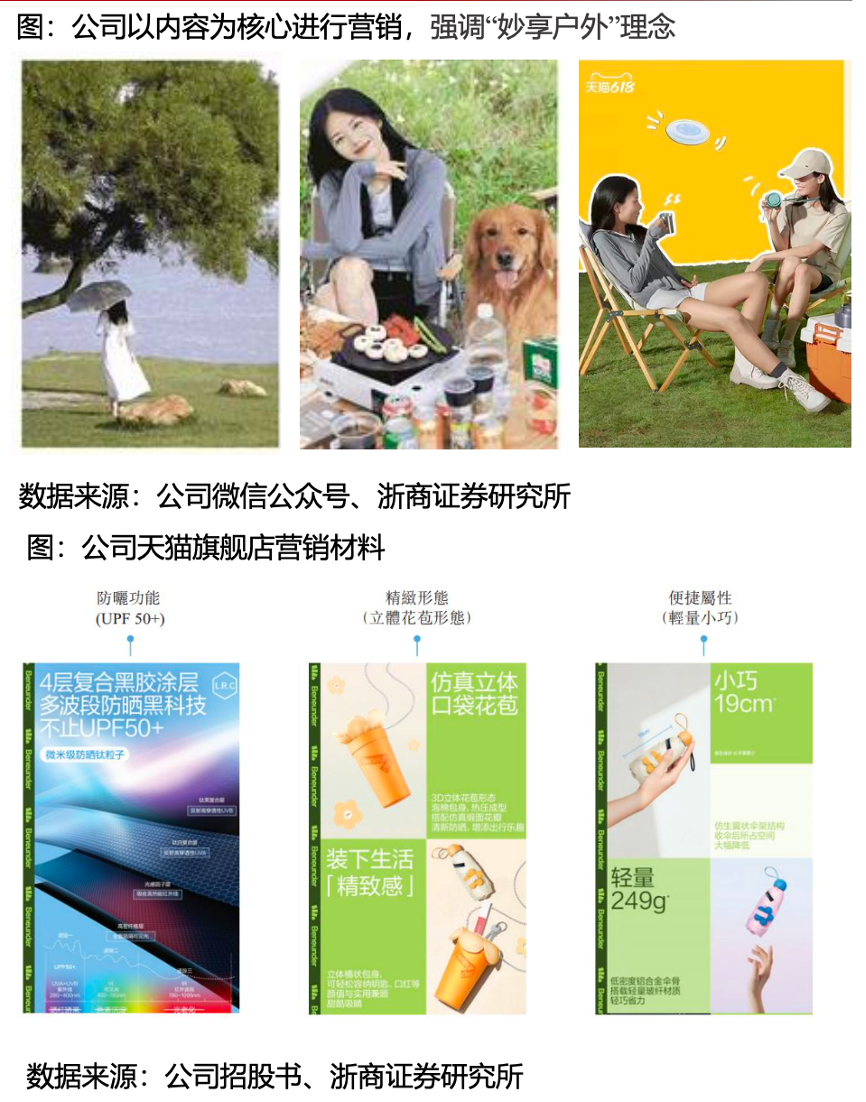 經(jīng)典案例:根據(jù)公司微信公眾號(hào)、公司天貓旗艦店、公司招股書(shū)、浙商證券研究所等綜合資訊表明,蕉下強(qiáng)調(diào)與用戶(hù)交互,以?xún)?nèi)容為核心。在整個(gè)營(yíng)銷(xiāo)過(guò)程中,公司專(zhuān)注于傳達(dá)自身產(chǎn)品如何利用前沿技術(shù)滿(mǎn)足用戶(hù)需求,并與專(zhuān)業(yè)檢測(cè)機(jī)構(gòu)與KOL合作進(jìn)行產(chǎn)品測(cè)試及評(píng)估以完成消費(fèi)者教育。目前其覆蓋天貓、抖音、微信、微博、小紅書(shū)等平臺(tái),截至21年底,在國(guó)內(nèi)流行社交平臺(tái)合計(jì)擁有粉絲1400萬(wàn)。